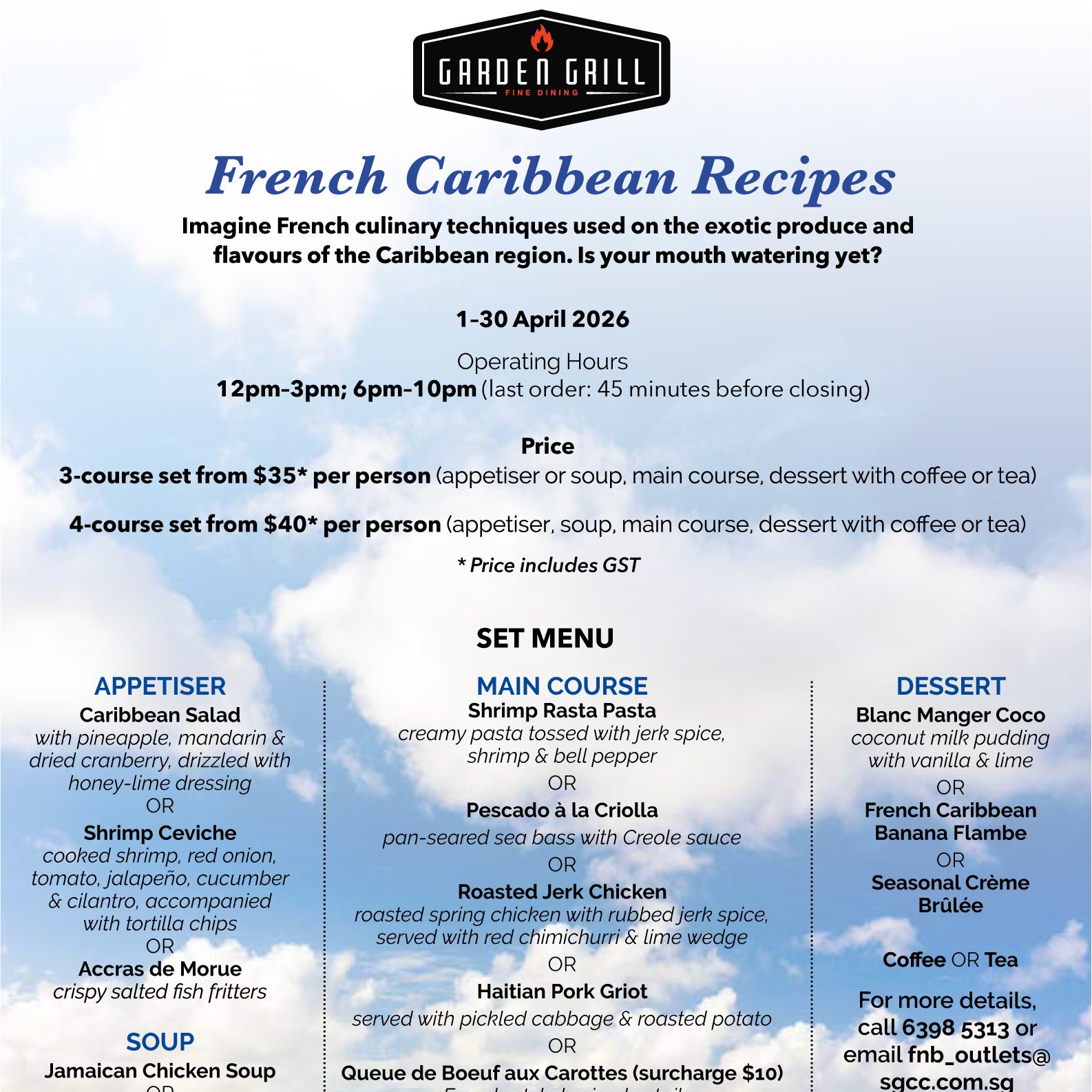 17 Mar French Caribbean Recipes | Garden Grill | April 2026 Posted at 09:36h in Dining & Entertainment, Facilities Garden Grill, Garden Grill, Promotion On Going Read More