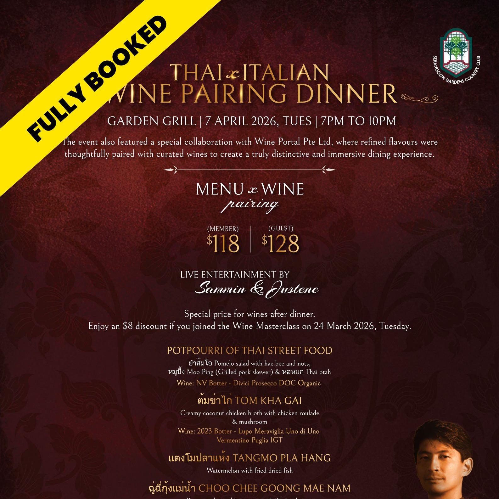 18 Mar Thai x Italian Wine Pairing Dinner | Garden Grill | 7 April 2026 Posted at 11:30h in Dining & Entertainment, Facilities Garden Grill, Garden Grill, Promotion On Going Read More