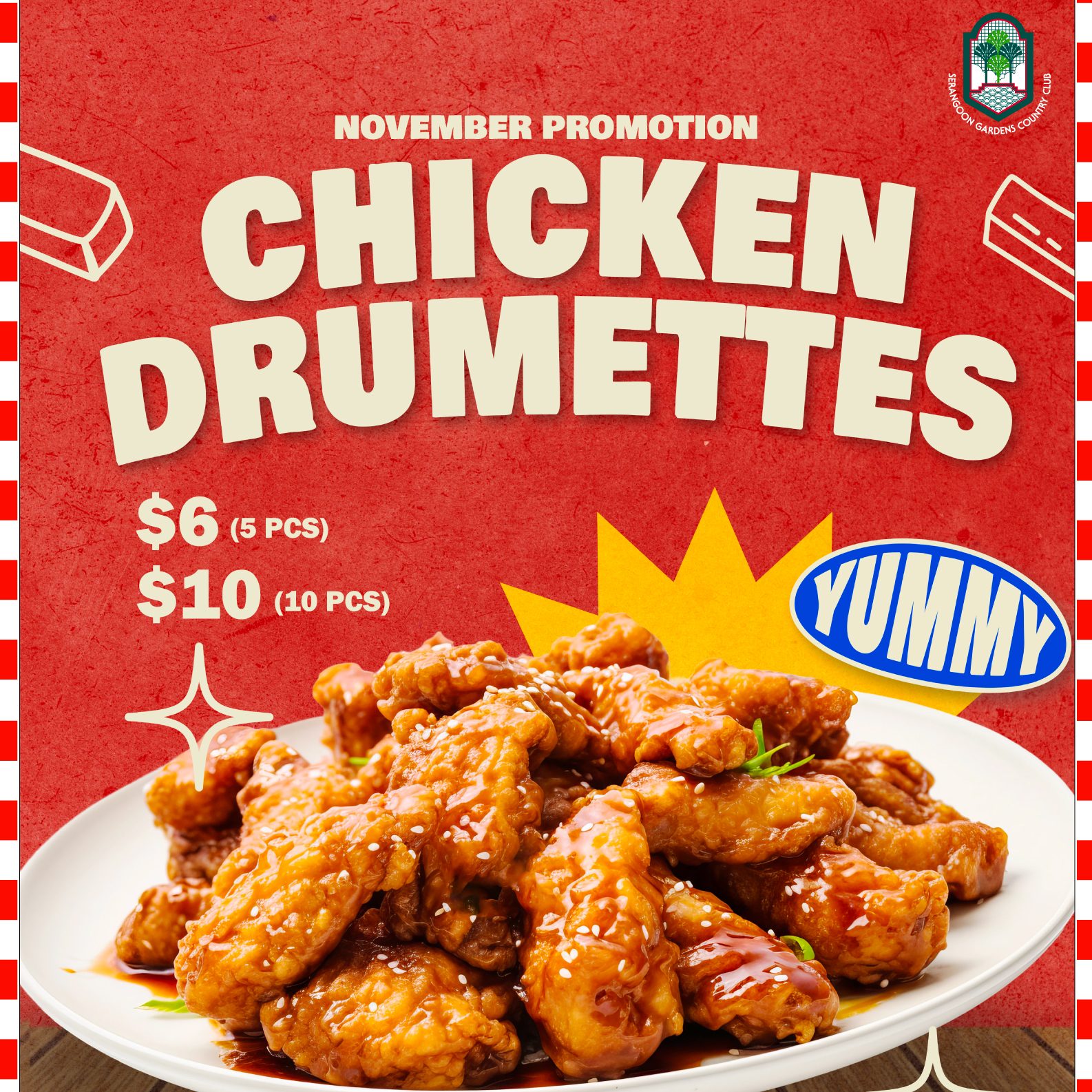 29 Oct Chicken Drumettes | Crossroads | November Promotion Posted at 16:39h in Crossroads Lounge, Facilities, Facilities Crossroads Lounge, Promotion On Going Read More