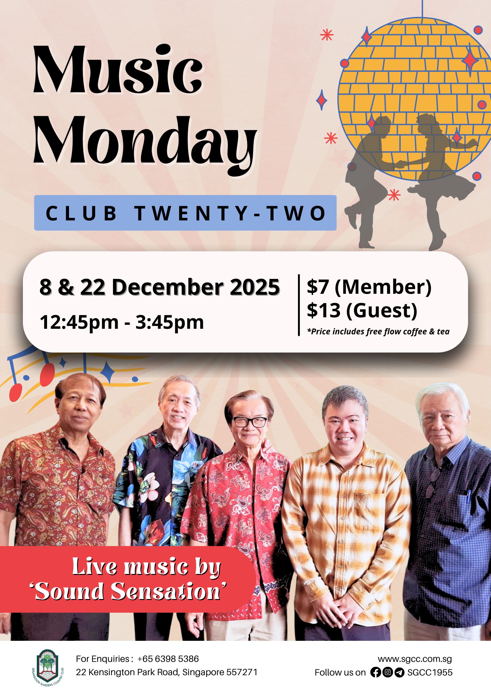 17 Feb Music Monday | Club 22 | 8 & 22 December 2025 Posted at 13:31h in Club Twenty-Two, Dining & Entertainment, Promotion On Going by SGCC Management Admin