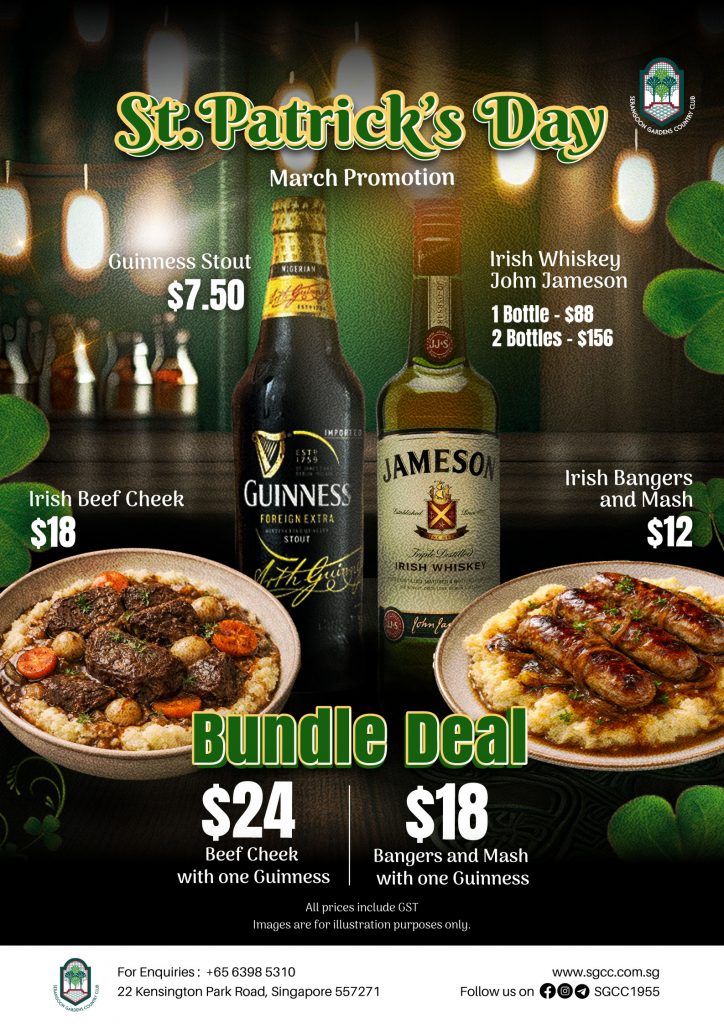 26 Feb St. Patrick’s Day | Crossroads | March Promotion Posted at 13:00h in Crossroads Lounge, Facilities, Facilities Crossroads Lounge, Promotion On Going by SGCC Management Admin