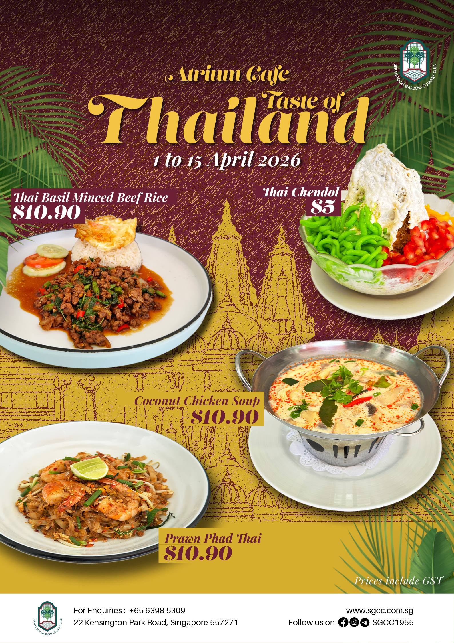 18 Mar Taste Of Thailand | Atrium Cafe | April 2026 Posted at 11:42h in Atrium Cafe, Dining & Entertainment, Facilities Atrium Cafe, Promotion On Going by SGCC Management Admin